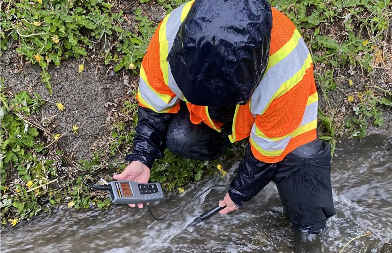 Hamill, who was trained as a fisheries biologist and water quality expert, took on the role of researching the methodology for capturing runoff samples. “Although we’ve known about this compound and the potential threat to our salmon for several years,” Hamill said, “we had to wait until last year when the EPA approved the protocol for the lab test before we could collect samples. The lab test has to be super sensitive down to parts per trillion because 6PPD-Q is so toxic to coho that 4 drops in an Olympic-sized swimming pool are enough to kill off 50% of a population. Once we had the lab protocol, we became one of the first sites in the state to test.”